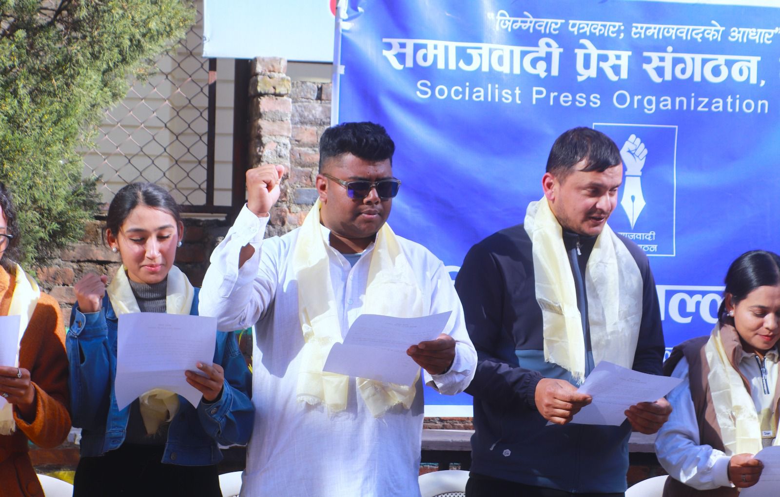 नेकपा (एकीकृत समाजवादी) का उपाध्यक्ष एवं संगठनका इन्चार्ज प्रकाश ज्वालाले नवनिर्वाचित कमिटीलाई बधाई तथा शुभकाना दिनुहुँदै संगठनको सुद्धिकरण र सुदृढीकरण अभियान शुरु भएकोले स्वतन्त्र र मर्यादित जनपक्षीय र प्रगतिशील पत्रकारिताका पक्षमा पत्रकारिताको माध्यमबाट समाजवाद स्थापनाको बाटोमा डटेर लाग्न आग्रह गर्नुभयो ।