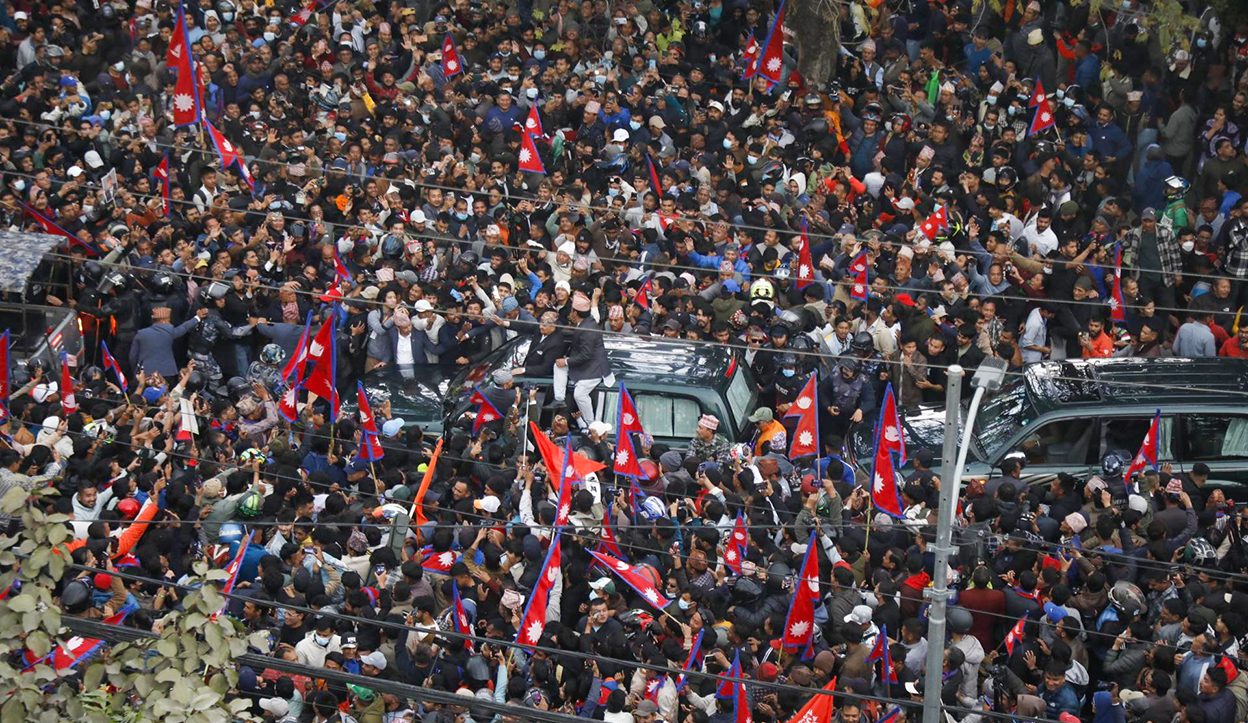 पूर्वराजालाई स्वागत गर्न राष्ट्रिय प्रजातन्त्र पार्टीका अध्यक्ष राजेन्द्र लिङ्देन र राष्ट्रिय प्रजातन्त्र पार्टी नेपालका अध्यक्ष कमल थापा, मेडिकल व्यवसायी तथा दुर्गा प्रसाईसहित ठूलो संख्यामा समर्थकहरू भिडले उनलाई निर्मल निवास पुर्याएको