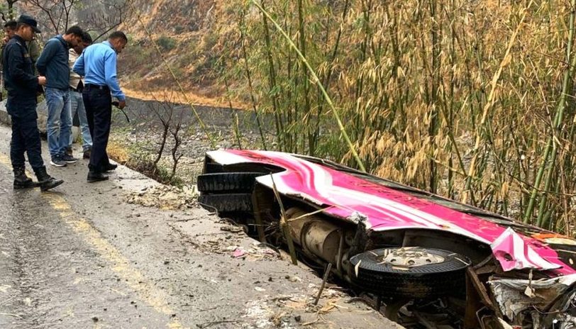 प्रदेश ३–०१–००६ ख १३३९ नम्बरको बस बिहान साढे ८ बजेतिर सडकबाट चिप्लिएर बाँसको झ्याङमा खसेको छ । दुर्घटनामा ११ जना घाइते भएका छन् ।