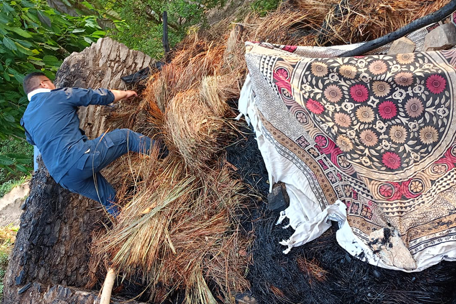 मनि नेपालीको ढुँगा र माटोले बनेको २ तले कच्ची गोठमा बुधबार आगलागी भएको थियो । दिदी(भाइसँगै खेलिरहेको समयमा गोठमा आगलागी भएको थियो ।