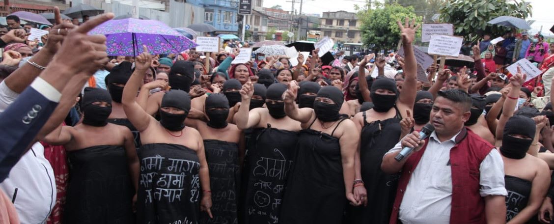 काठमाडौंमा सहकारी पीडितहरूले अर्धनग्न भएर प्रदर्शन गरेका छन्।