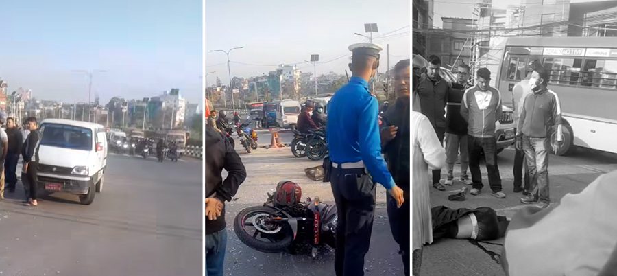 २५ वैशाख, काठमाडौं । काठमाडौंको मुनिभैरव मन्दिर नजिक सवारी दुर्घटना एक जनाको मृत्यु भएको छ । तीन जना घाइते भएका छन् ।