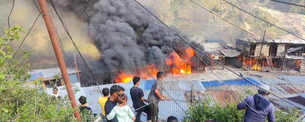 आगलागीबाट ४० भन्दा बढी पसलहरू जलेका छन् । क्षति यकिन भएको छैन ।