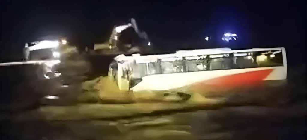 ३८ जना यात्रु बोकेर पूर्वबाट बर्दिया तर्फ जाँदै गरेको भे १ ख ४०८५ नम्बरको बस विहीबार राति करिब ११ बजेतिर बगाएको हो ।