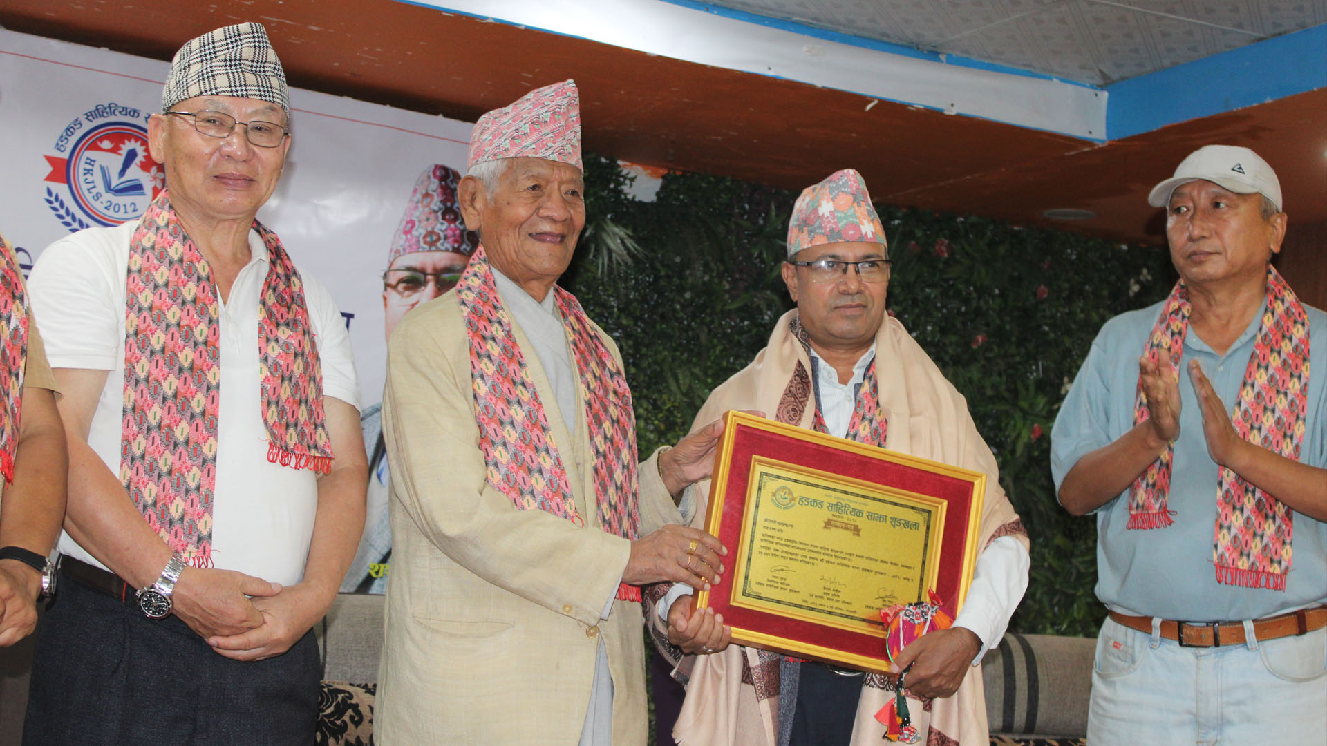 काठमाडौं । कवि तथा प्राज्ञ शशी लुमुम्बू ‘हङकङ साहित्यिक साझा शृङ्खला पुरस्कार तथा सम्मान–२०२५’ द्वारा पुरस्कृत एवम् सम्मानित भएका छन् । शृङ्खलाद्वारा शनिबार अनामनगरस्थित सिलौटो कटेजमा आयोजित भब्य समारोहबीच लुमुम्बू पुरस्कृत तथा सम्मानित भएका हुन् ।