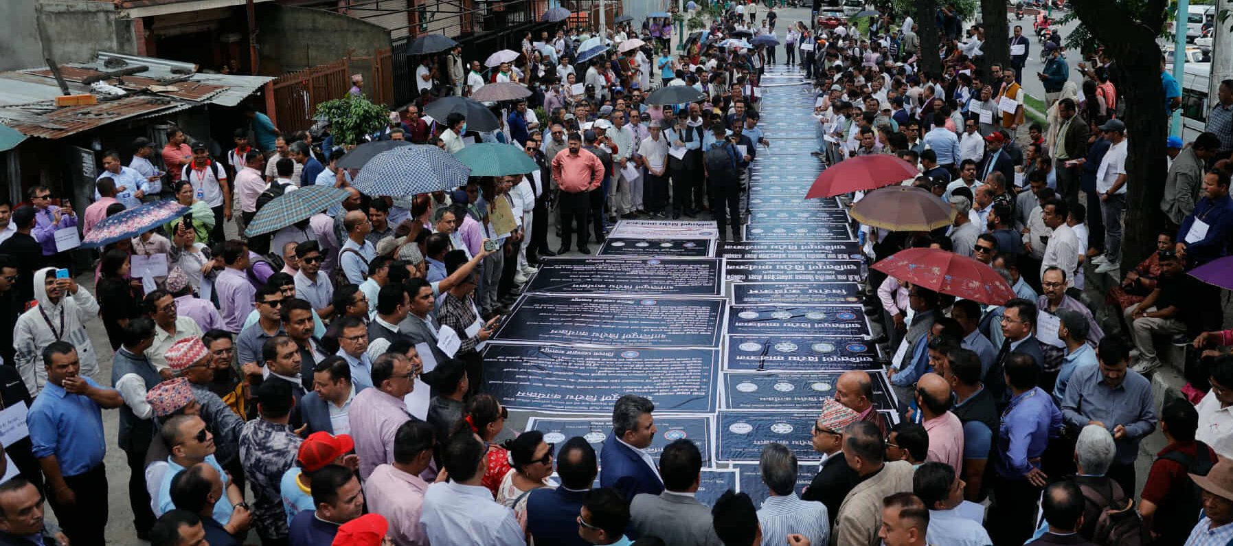 संसद् भवन घेराउ गर्न काठमाडौं उपत्यकासहित आसपासका जिल्लाबाट निजी विद्यालय सञ्चालकहरू कालोपट्टी बाँधेर काठमाडौं आएका थिए । उनीहरूको एउटै स्वर थियो, ‘निजी विद्यालय गैरनाफामुलक हुन सक्दैन । पूर्ण छात्रवृत्ति दिन सक्दैनौं ।’