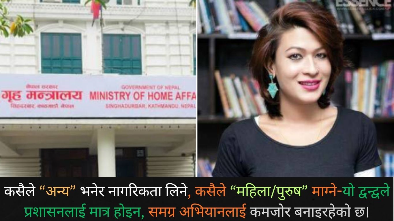 आजको समस्या केवल “पहिचान” को होइन, “नीति र संरचना” को हो। एउटै जैविक, सामाजिक र सांस्कृतिक पृष्ठभूमिका व्यक्तिहरूलाई कसैले “अन्य” भनेर नागरिकता लिने, कसैले “महिला/पुरुष” माग्ने-यो द्वन्द्वले प्रशासनलाई मात्र होइन, समग्र अभियानलाई कमजोर बनाइरहेको छ।
